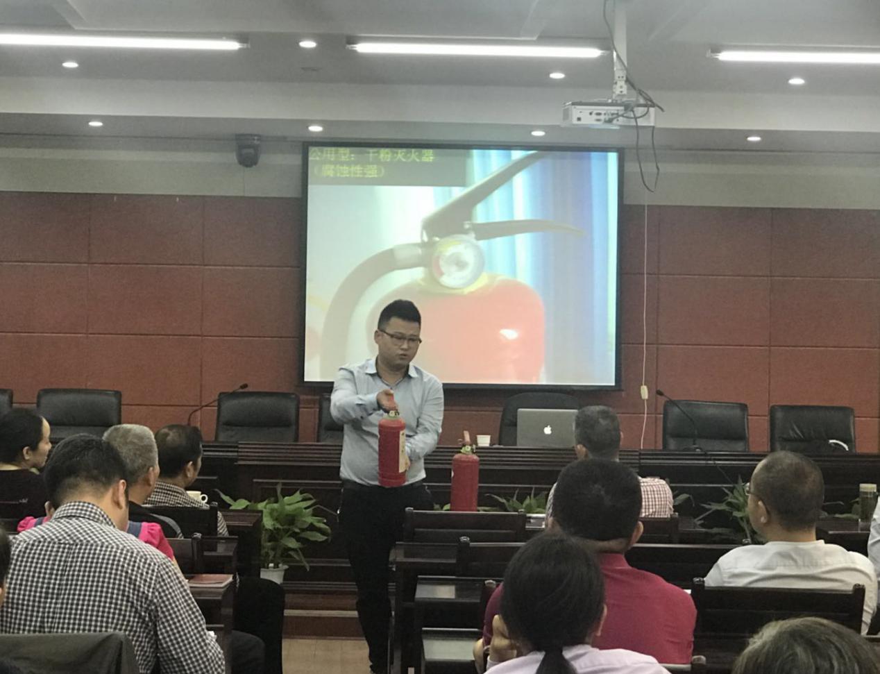 最后,刘教官还在现场演示了逃离火灾现场时湿毛巾的正确折叠方法、灭火器械的种类及如何正确使用,使大家对消防常识、自救技巧和灭火器材有了更加深刻的认识。