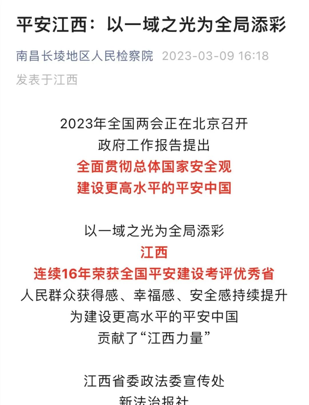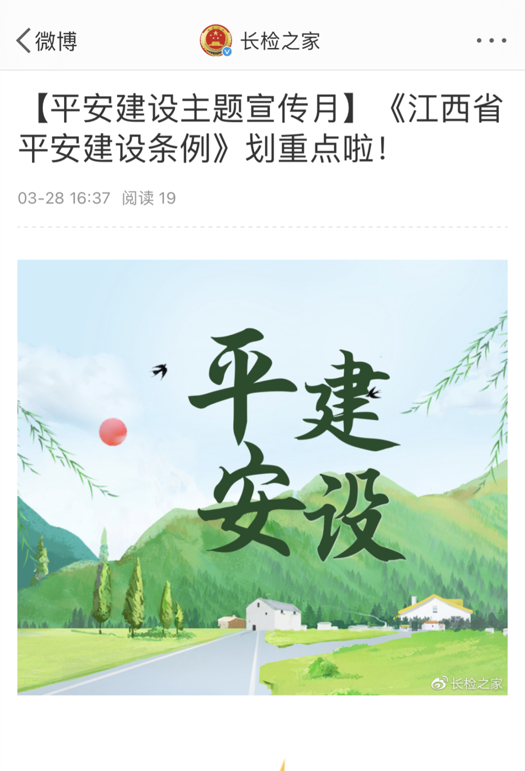 为深入学习贯彻习近平法治思想,特别是习近平总书记关于平安建设的重要指示精神,进一步掀起学习宣传贯彻《江西省平安建设条例》热潮,根据江西省平安江西建设领导小组办公室和江西省人民检察院部署安排,江西省南昌长堎地区人民检察院于2023年3月份组织开展“平安建设主题宣传月”活动。