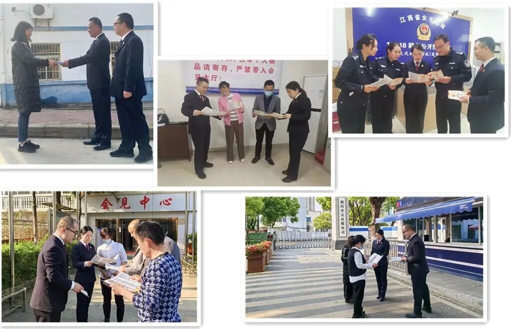 驻赣江监狱、女子监狱、省未成年犯管教所等检察室的检察人员,走进监狱会见区和接访区、监狱家属区,通过发放平安建设宣传资料、提供法律咨询和现场答疑解惑等方式,向监狱民警家属、服刑人员家属介绍平安建设工作的重要性和必要性,助力群众不断增强法治意识、持续提高法治素养,自觉做到学法、知法、守法、用法。