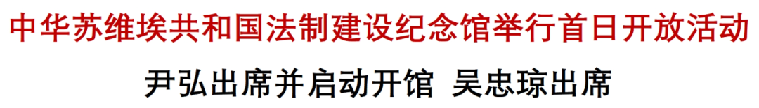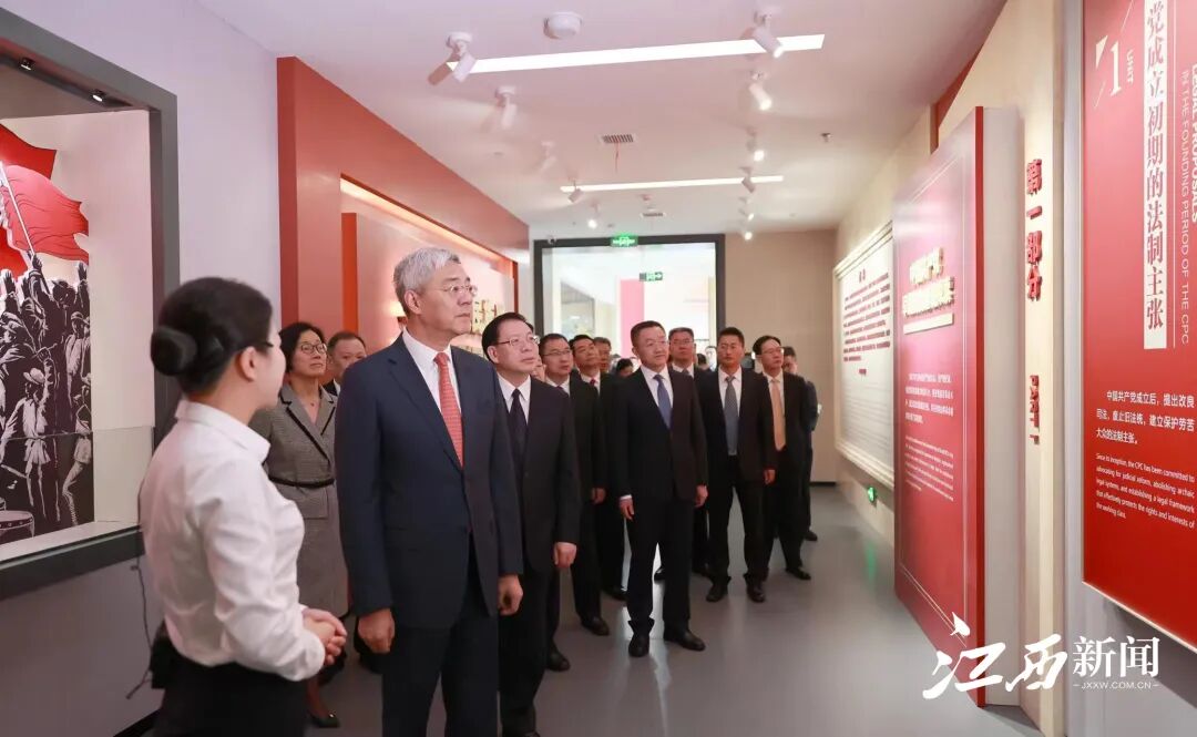 在首日开放活动仪式上,尹弘按键启动了中华苏维埃共和国法制建设纪念馆开馆。随后,尹弘等领导走进纪念馆,认真听取讲解,不时驻足观看,询问有关情况。一件件珍贵的文物实物、一幅幅生动的照片图片、一个个逼真的复原场景,全面展示了从苏区时期到新时代党领导依法治国的伟大实践和辉煌历程。大家听介绍、看展陈、用心悟,从瑞金开始追根溯源,更加深刻认识了红色政权来之不易、新中国来之不易、中国特色社会主义来之不易。一致表示,要深入贯彻党的二十大精神和习近平法治思想,紧紧围绕推进全面依法治国和法治中国建设的战略任务,不忘初心、牢记使命,传承红色基因,赓续红色血脉,汲取智慧力量,坚定不移地走中国特色社会主义法治道路。参观调研中,尹弘要求加强与中央相关部委紧密协作,健全管理服务机制,不断挖掘丰富内涵,充分发挥纪念馆政治轮训、教育培训等功能作用,努力把纪念馆打造成全国传承红色基因、加强法治宣传教育的重要基地。