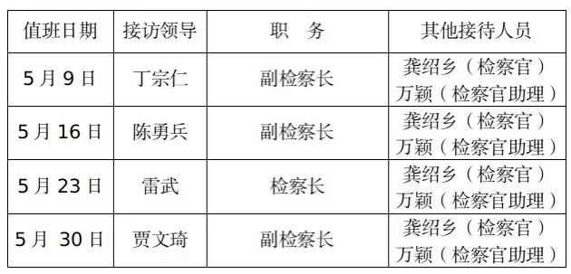 长堎地区检察院2024年5月“检察长接待日”工作安排