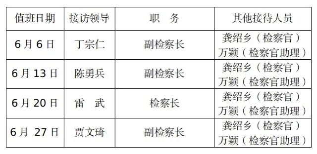 【贯彻政法工作条例】长堎地区检察院2024年6月“检察长接待日”工作安排