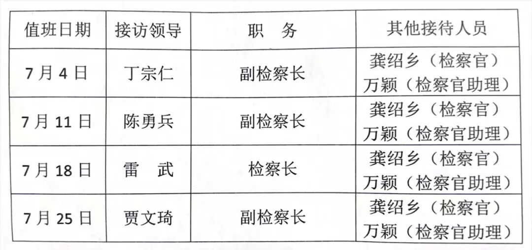 【贯彻政法工作条例】长堎地区检察院2024年7月“检察长接待日”工作安排