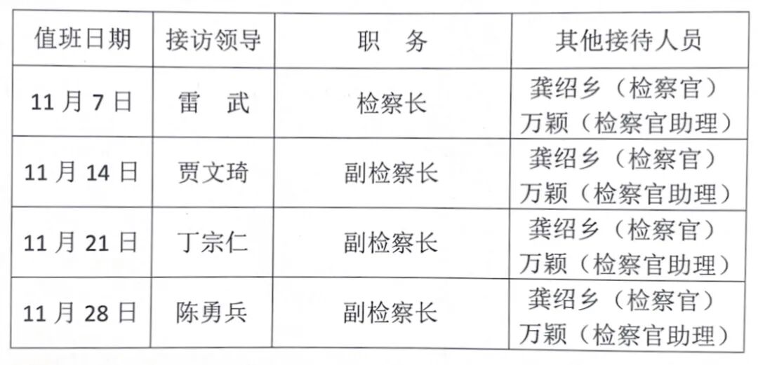 【贯彻政法工作条例】长堎地区检察院2024年11月“检察长接待日”工作安排
