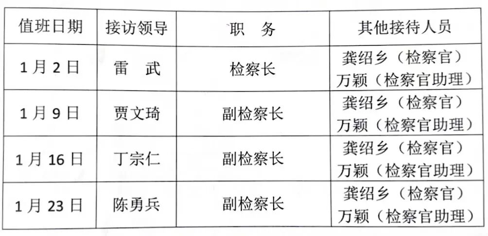 长堎地区检察院2025年1月“检察长接待日”工作安排