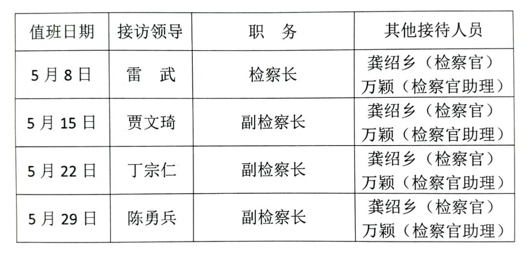长堎地区检察院2025年5月“检察长接待日”工作安排