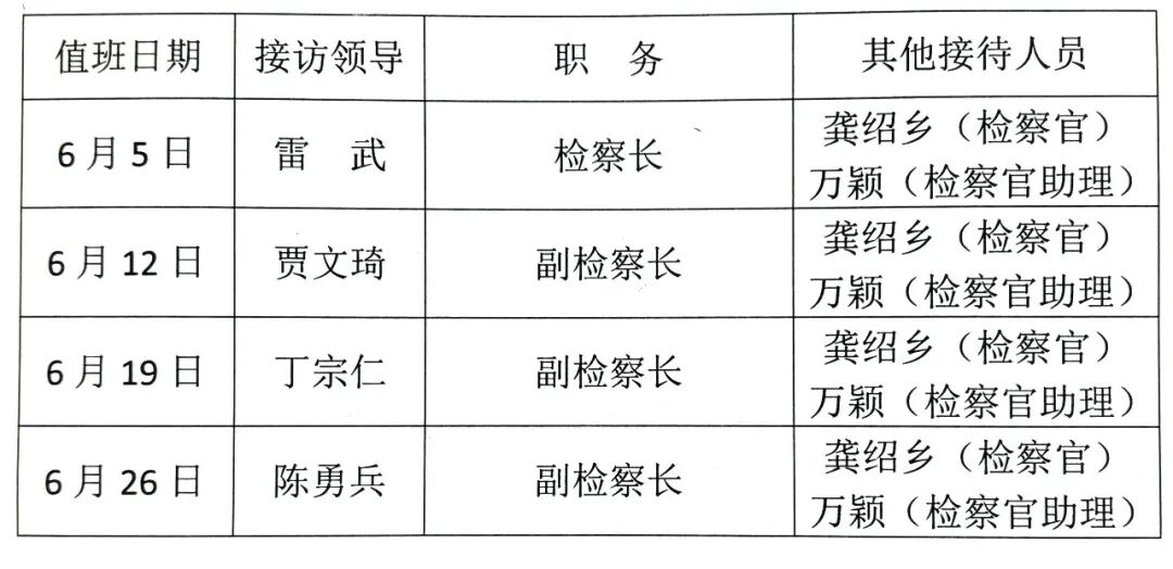 长堎地区检察院2025年6月“检察长接待日”工作安排