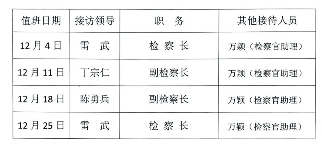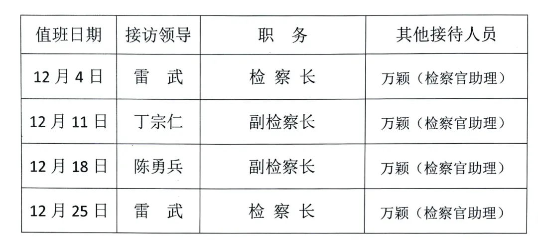 江西省南昌长堎地区人民检察院2025年12月“检察长接待日”工作安排