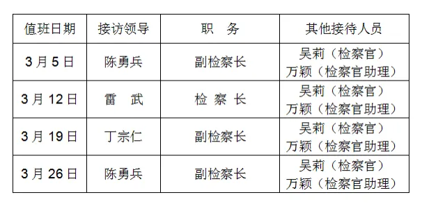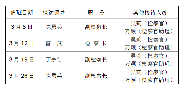 江西省南昌长堎地区人民检察院2026年3月“检察长接待日”工作安排