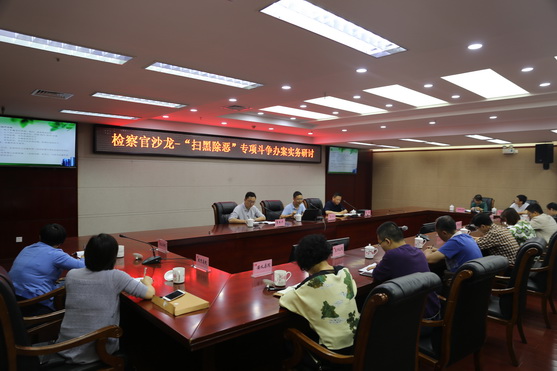 詹文成就扫黑除恶专项斗争有关精神和黑社会犯罪组织、恶势力的判断和认定等问题作了详细讲解,并结合全省检察机关在扫黑除恶专项斗争中遇到的问题作了专业解答。孙毅结合全市公安机关在办理扫黑除恶案件中的侦办模式、公检法机关配合和证据固定、证人保护等方面进行了阐述,并对实务疑难问题进行了解答。市检察院“扫黑除恶”办公室对全市检察机关专项斗争的有关精神落实情况和存在的问题进行了通报,并就下一步工作进行了部署。各县区检察院针对扫黑除恶专项斗争中遇到的问题踊跃提问和交流,南昌县检察院、安义县检察院结合具体案件,对案件侦办过程中的提前介入情况进行了介绍。