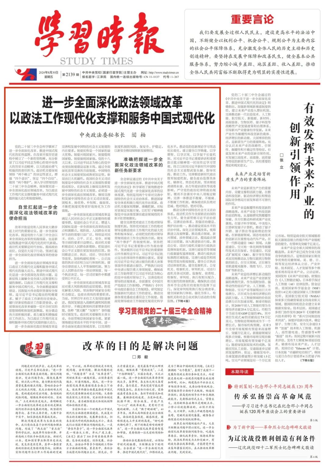 党的二十届三中全会科学擘画了进一步全面深化改革、推进中国式现代化的宏伟蓝图,在改革开放历史进程中树立了一个新的里程碑,充分彰显了以习近平同志为核心的党中央伟大的历史主动精神、巨大的政治勇气和强烈的责任担当。政法机关要深刻领悟“两个确立”的决定性意义,增强“四个意识”、坚定“四个自信”、做到“两个维护”,深入学习贯彻党的二十届三中全会精神,谋深做实进一步全面深化政法领域改革,为以政法工作现代化支撑和服务中国式现代化提供强大动力和制度保障。